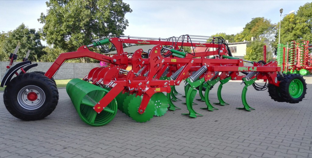 The tine cultivator is designed to cultivate and improve all types of soil. The main task of the unit is to cultivate the soil after harvesting up to 15 cm (with side plows) and deep ground plowing to 30 cm (without side plows). The device has three rows of working elements, with a distance of 30 cm. This ensures high soil mixing efficiency. The unit is of high quality and has a simple and durable construction.