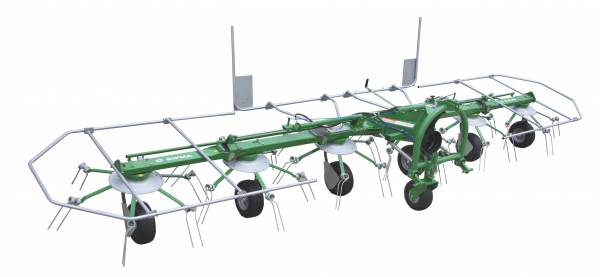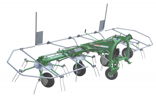 Hydraulic system, which the tedder is equipped with (a pair of single-acting hydraulic cylinders), enables folding and unfolding of the machine for transport or working position. Once the machine is unfolded for the transport position, cylinders are automatically locked, which prevents accidental unfolding.