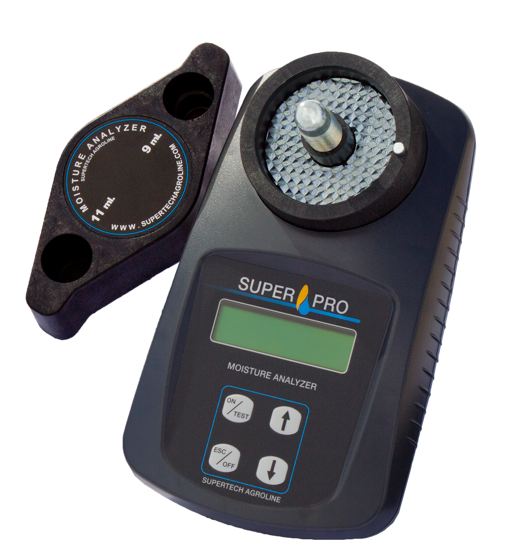Superpro moisture meter – always reliable of the next generation. The grain is grounded and compressed in just one operation and the temperature is compensated for automatically, therefore the measurements are much more reliable.