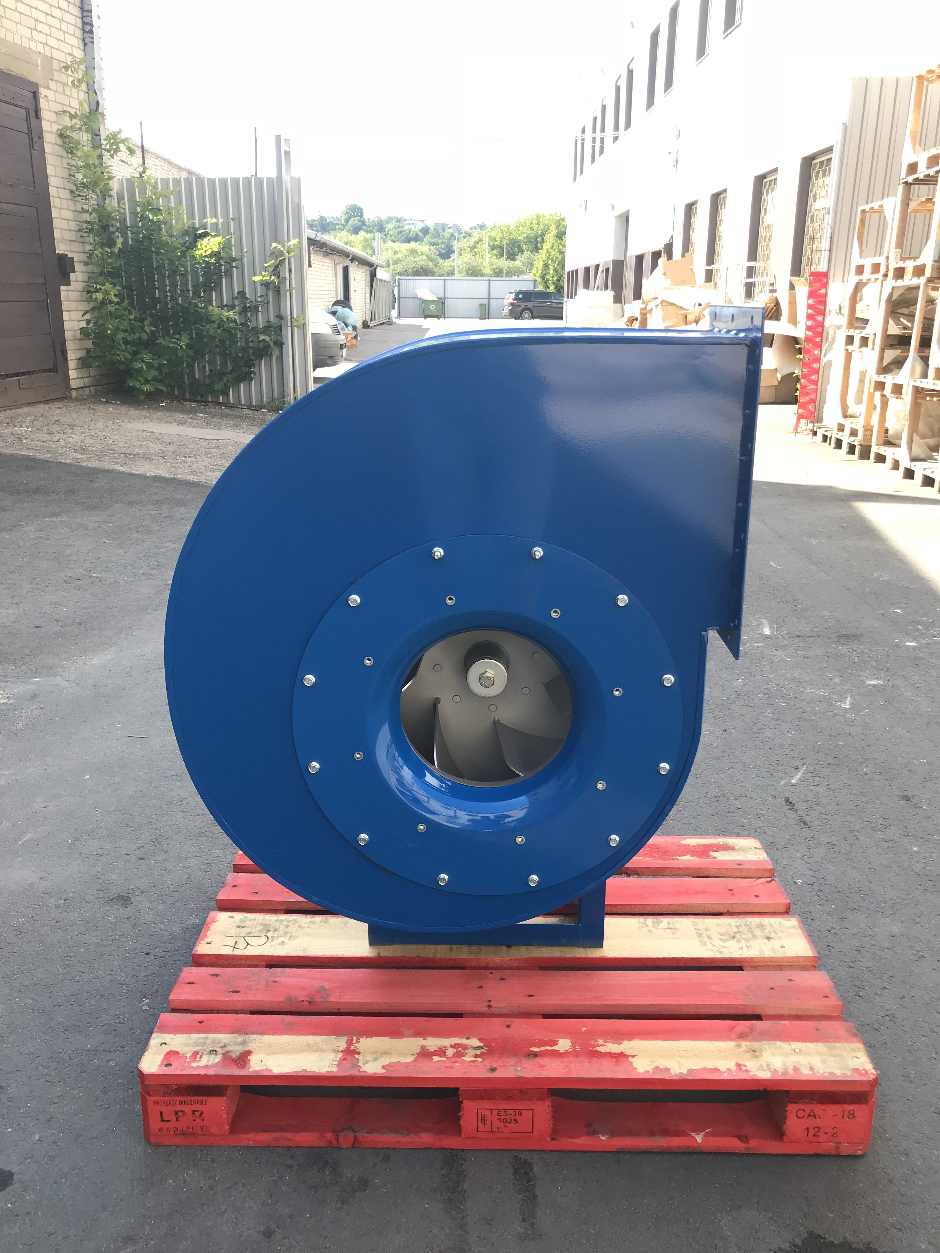 Вареный металлический корпус, крашенный. Крыльчатка с изогнутыми лопастями, сваренная роботом, крашенная.